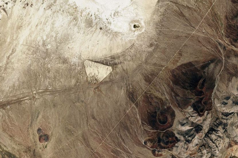 Na objavljenoj fotografiji je vidljiv veliki, jasno definisan trougao, čije su stranice gotovo ravne i jednake. Kada se satelitski prikaz uveliča - na koordinatama 40.35322, -117.34707, uočavaju se slabi linearni tragovi.